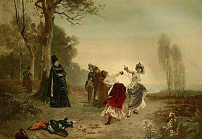 Ez az oka annak, hogy a párbaj, amikor közönségesek és még népszerűek is voltak, nemcsak a férfiak körében fordultak elő, fegyverekkel a kezükben harcoltak egymást és a nőket. És a nők párbajai is úgy tűnt a kortársak kegyetlenebbek, mint a férfiak.
