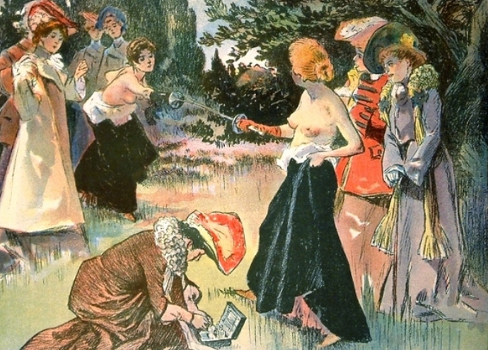 A párbeszédre általában zárt vagy félreeső helyeken került sor, a hölgyek minden bizonnyal küzdenek félig, mivel azt hitték, hogy a ruha nem csak korlátozza a mozgást, de azzal is fenyeget, hogy darabokra üt a sebbe kerül, ami valamilyen oknál fogva ijesztette az embereket abban az időben.