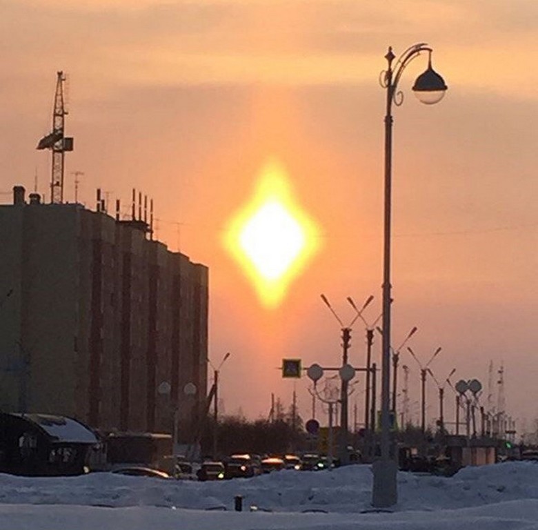 A vírusok nagyon gyorsan terjednek az interneten kíváncsi képek a Novy Urengoy Oroszország lakosai által. az a legrosszabb nap a hiedelmek és babonák szempontjából 13 Áprilisban egy furcsa rombusz nap emelkedett a város fölött, ami megrémítette ezen északi település lakosait.