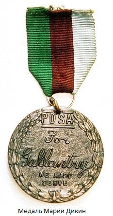 Van egy olyan érem a világon, amelyben senki sem volt oda. És ez nem meglepő, mert a katonaság ez a jele csak azok az állatok, akikkel megosztották az ember a mindennapi küzdelem nehézségeit. Maria Dikin érme 1943 Maria Dikin, aki megalapította a Népi Kórházat a betegek számára állati kezdeményezésű intézményi díjak a képviselők számára a harcban részt vevő vadon élő állatok és ugyanakkor megkülönböztették magukat. A érmén babérkoszorút díszített a “Bátorságért” felirat, és a “Mi is szolgálunk” alatt. Hagyományos díj bemutatja a londoni polgármestert. Az érem a legmagasabb katonai Nagy-Britannia államainak odaítélése, és ezzel egyenértékű a Rendtel “Victoria Cross”.