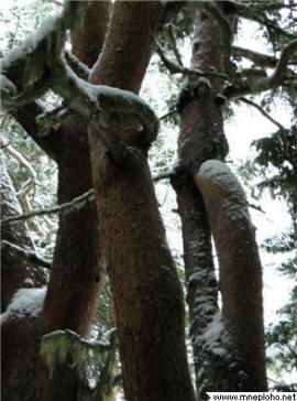 Ahol csavart fák nőnek, alig látható valaki síremlékei. Az egyik változat szerint ezek az ősi sírok Vogulok, úgynevezett mansi emberek. Másrészt ezek nyomok mélyedések, amelyekben a fehér szemű csoda él, mitikus emberek, állítólag körülnézi Jeruzsálemet Salamon király alatt. Bujkál a üldöztetés, Chud északra ment, ahol rejtett helyre telepedett le erdei bozót.
