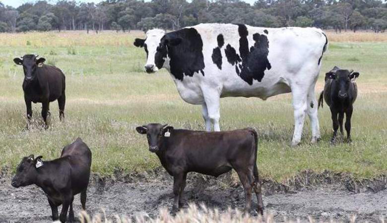 Óriás méretű tehén, amelyet az egyik gazdaságban neveltek fel Ausztrália valódi internetes szenzációvá vált.