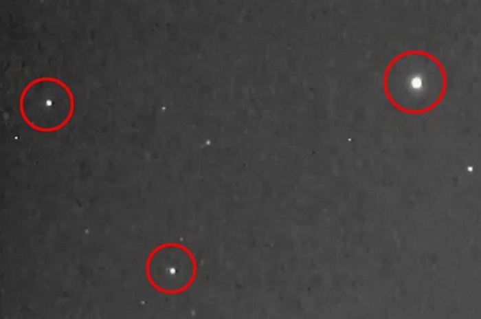 Egy amatőr csillagász a Kentucky-ból érdekes jelenséget rögzített. A csillagos égboltot figyelve látta a közelben három fényes pont szinkronban mozog, egy sajátos sorban állva a háromszög.
