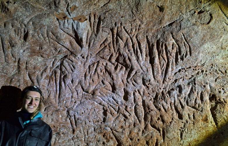 Hatalmas nyomok maradtak a padlón, a falakon és a mennyezeten a barlangok szerint óriási rések ástak őket, vagy a tudományos megaterápiában. Legalább ez a vélemény ferde tudósok.