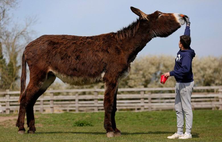 Derrick nevű mamut szamár, egy szamárkészletben él Az angliai Lincolnshire Radcliffe még nem érte el érettségét életkor, azonban a tulajdonosok már remélik, hogy az állat hamarosan megérkezik bekerül a híres Guinness Rekordok Könyvébe.