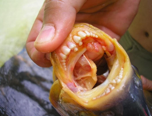 Veszélyes hírnévre tett szert a kasztrálás után. több helyi halász Pápua Új-Guineában. Ezért, amikor a hal több dáni és később Washingtoni tavakban fedezték fel, New Jersey és Illinois – enyhe pánik jött fel.