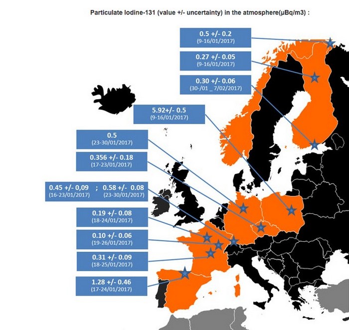 A progresszív kutatók ezt állítólag kb idén január közepén robbanás történt Európában (vagy hasonló esemény), amelynek eredményeként az “északi” országokban a radioaktív jód-131 hirtelen megnövekedett hátterét regisztráltuk. Ugyanakkor erről valamilyen módon információt nem szivárogtak a média, ami nagyon még furcsa is.