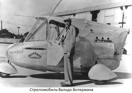 Waldo Waterman készítette a “nyíl autó” repülni. A szárnyak voltak kivehető. Ez volt az első igazán repülő modell. teljesítmény motor – 100 lóerő, sebesség 200km / h a levegőben és 110 km / h a földön. 3 egységet építettek, további 6-ot pedig megrendeltek, de finanszíroztak A Studebaker társaság hivatkozással elutasította magas költségek.