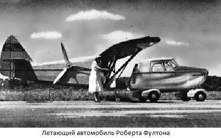 Robert Fulton, a pároló alkotójának rokona Híres ősével együtt építette az “Aerofibiya” -ot. hat hengerek, 150 LE, 160km / h a levegőben és 80 km / h a földön. repülő Fulton autója volt az első, aki igazolást kapott a Hivataltól USA polgári repülés. Az autó a kísérletben maradt például, mert a kivitelező nem tudta megoldani a problémát további projektfinanszírozás.