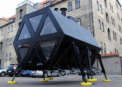 Az N55 dán dizájnstúdió fantasztikusat hozott létre moduláris önálló ház, amely képes járni a város körül. A sétáló ház egy napelemmel felszerelt alapmodulból áll panelek és kis szélmalmok generálására energiát.
