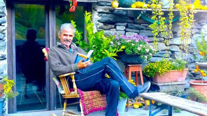 Mottalini-nak saját kertje van, amely minden évben válik egyre több Egy ember itt termeszt gyümölcsöt és zöldséget. Szerint Olaszul, egy ember számára ez túl sok, tehát több a termesztett termékek egy részét vadállatoknak és madaraknak táplálja, ami teljesen megszelídült neki. Boldog remete miközben távol van, fényképez természetét, könyvet olvas a nagyanyjától otthoni könyvtár, fizikai gyakorlatok elvégzése és ivás bor, amelyet függetlenül almából készítenek.