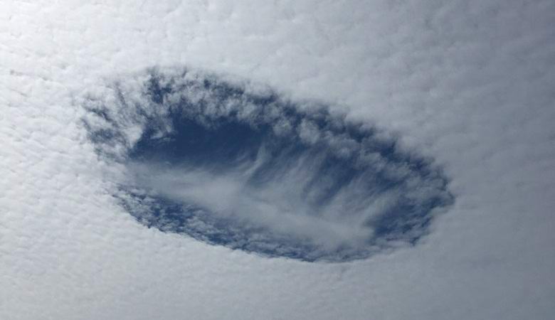 A pillanatkép június 15-én készült Leningrádi régió. Ropsha falu lakossága a Lomonoszov körzetben folyamatos felhőréteget észlelt az égen, amelyben mindazonáltal volt egy titokzatos csónakszerű nyílás. tudott gondolom, hogy néhány futurisztikus alakú nagy repülőgép itt szárnyalt az égbe, és egy ilyen furcsa nyomot hagyott hátra.