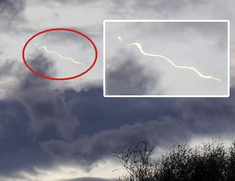 Két kevés barát él az angol Crewe városban Cheshire-ből, az égen fényképezett egy furcsa rendellenességet, amely hasonló a egy futurisztikus repülőgép kondenzációs nyomán. tovább a szemtanúk szerint ez olyan, mint egy sugárút “őrült pilóta.”