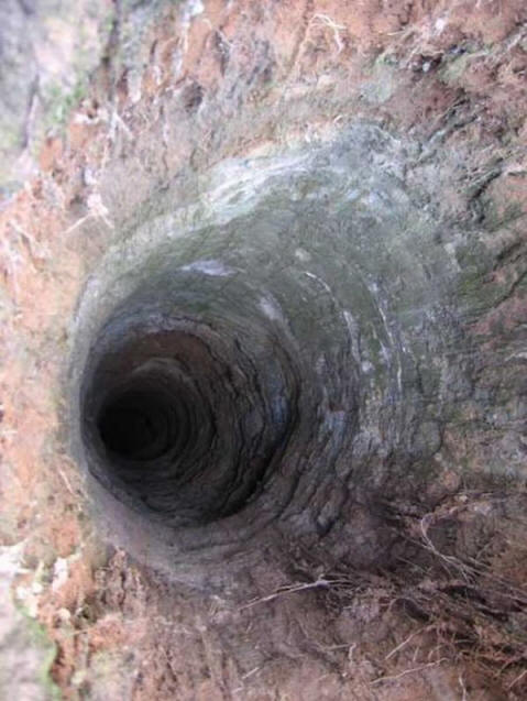 Egy furcsa gödöröt találtak Kharkov közelében az erdőben. 18. mélység méter, átmérője 1,2 méter, a falak simaak. Menj fel nem megengedett. A közelben nincs halom kiválasztott földterület. Nem mérik a sugárzást. le oldalra ágak 2-3 méter széles 40×60 cm, tehát senki sem tudja, ki ásta.