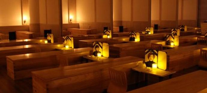 Szöulban az öngyilkossági tendencia leküzdésére különleges rituálékkal álltak elő, amely egy temetés próbaéből áll. Az az ember, aki úgy döntött, hogy elmenekül magának az öngyilkosságról szóló összes gondolatát, ír egy akaratot, és el is búcsút mond rokonok és barátok. Hagyományos temetkezési ruhát visel ruhát, lefektet egy fa koporsóba, és úgy tesz, mintha meghalt. Ugyanakkor a képzeletbeli halott ember rokonai közül teljes részvétel szükséges – ők minden veszteség fájdalmát valószínűleg be kell mutatni szeretett személy. Annak ellenére, hogy természetesen senki sem temetik a koporsót, mindazonáltal szorosan le vannak zárva, így távoznak lyuk az oxigén számára. Egy ember fekszik a hangmagasság sötétségében tíz perc alatt a legszebb érzelmek teljes palettáját tapasztalja meg.