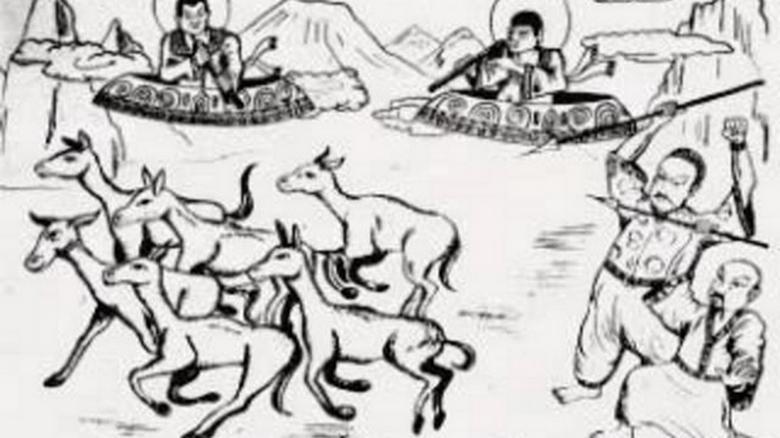 Sziklafaragványok Kazahsztán számos petroglifjából felfedezték a Tamgaly-Tas traktusban. És bár Kazahsztánt és Japánt elválasztják egymástól Több ezer kilométer, úgy tűnik, hogy az emberek élnek hatalmas távolságban egymástól, ugyanazt látta az égen idegenek vimana.