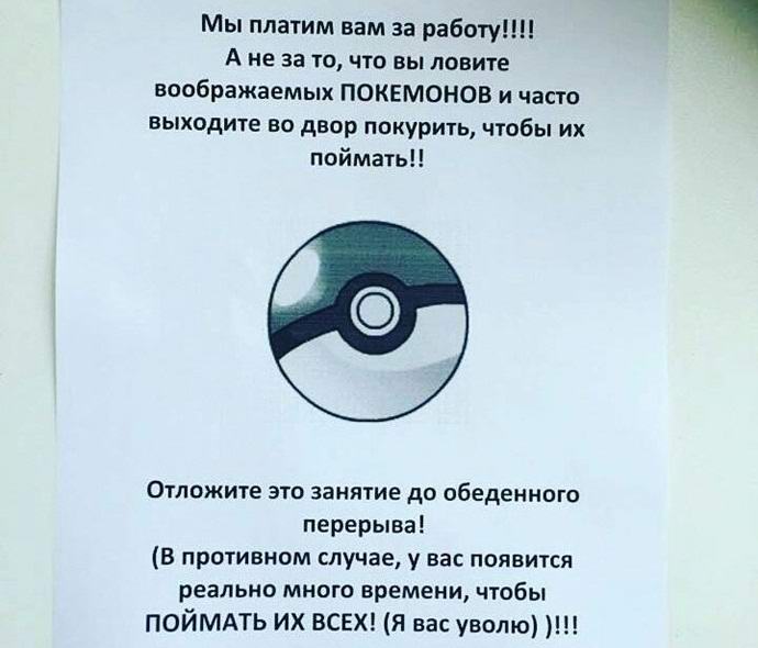 Sok országban megjelennek illegális “Pokemon taxisofőrök” aki díj ellenében elviszi Önt a város körül egytől poggyász egy másikhoz. Kávézó-tulajdonosok felfedezték Pokemon-ot a saját részükben az intézmények azonnal jelezik ezt az információt a táblákon, és a látogatók valóban jönnek. És itt vannak könyvtárak, múzeumok és más komoly intézmények nem örülnek ilyen figyelemnek. Például Arlington Nemzeti Temető az USA-ban, Washington Holokauszt Emlékmúzeum és számos amerikai park igényelte a látogatók megtagadják a Pokemon elfogását a létesítményeikben, fenyegetve vezet be hivatalos tilalmakat pénzbírsággal.