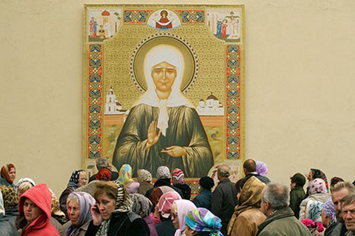 Végül, miért hirtelen jött az ötlet, hogy írjon egy ikont amely ábrázolja Moszkva Matrónát, aki áldja Sztálint a honvédelem? És bár még az egyházi emberek sem veszik figyelembe kanonikus, mert egy ilyen titkos találkozó, még akkor is, nem tekinthető történelmi ténynek, I.Pivnikov ikonfestő valahonnan elvette ezt a szellemi képet, és átvitte az ikonra a jelen pillanatot Strelna-ban tárolják – a Szent templomban Olga hercegnő az apostolokkal egyenlő).