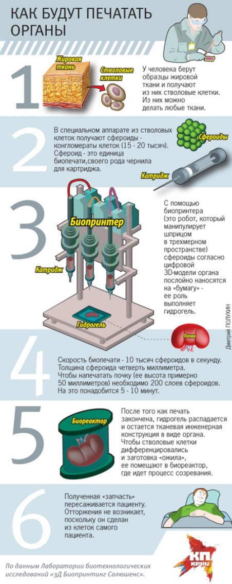 A világ első élő orgonáját nyomtatják Oroszországban, 2015. március 15-én évben. Ezt állította Vlagyimir Mironov, az orosz vezető Biotechnológiai Kutatólaboratórium “3D bionyomás Megoldások “, a Virginiai Egyetem (USA) professzora szenzáció elmondta “Komsomolskaya Pravda” az új fantasztikus lehetőségeiről technológiát.