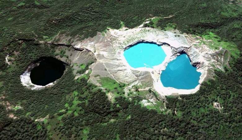 Nem mindenki tudja az indonéz természet egyedülálló csodájáról Flores-sziget. A Kelimutu helyi vulkánnak három krátertava van, különféle árnyalatokban festett. A legcsodálatosabb dolog az, hogy ezek mindegyike a tartályok rendszeresen megváltoztatják a színt. A tavak tejfehérké válnak fényes türkiz, sötétbarna, világoszöld, vízhatlan fekete sőt vérvörös. Festői látványosság A tengerszint feletti magassága 1639 méter.