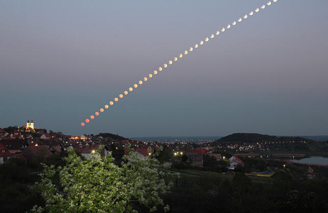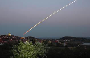 A pillanatkép lényegében egymást követő keretek sorozata. Rajta szabad szemmel jól látható, mint a bal felső sarokban a Föld által leadott árnyék fokozatosan eltűnik.