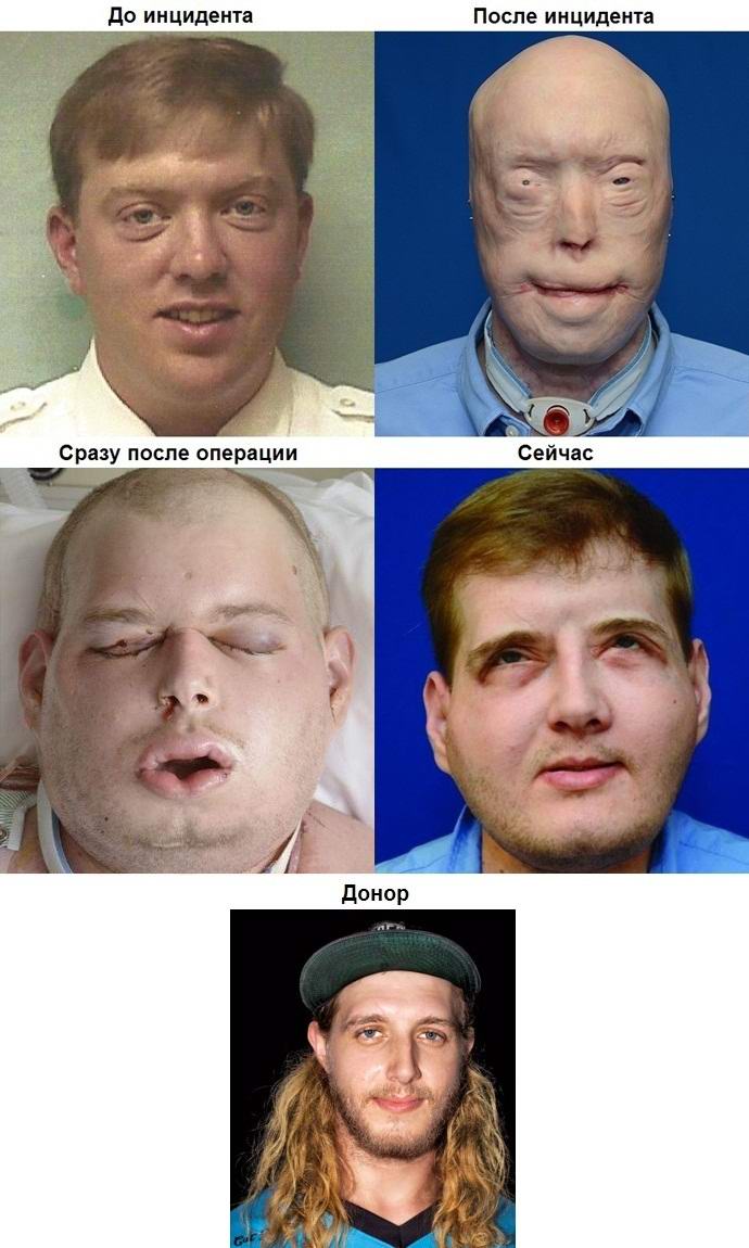Amikor egy tizennégy évvel később egy amerikai felajánlotta, hogy legyen egy az első olyan személyek közül, akiket teljesen elültetnek az elhunyt donorok arcára, hosszú ideig nem gondolta a választ. A műtét pontosan egy évig zajlott vissza 2015 augusztusában. Az orvosok nem voltak biztosak abban, hogy a test a beteg megkapja a donor szövetét és képes lesz arra, hogy idővel átvegye irányítson egy új arcot, de úgy döntött, hogy kockázatot vállal. A végén minden a legjobb módon alakult ki.