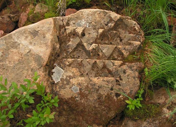 Az orosz szokatlan sziklával találkozott a folyó közelében Nagy Nymnir. Nincs hatnál közelebb eső város és falu több tíz kilométerre a közelben. Valószínűleg kő granit, és kezelje olyan kemény kőzetet, mint a nagyon nehéz. Valaki kőfaragott-e? szerszám háromszögek, majd belemerült a termékbe a gépbe, és elmenekült a civilizációtól? Nehéz elhinni ebben.