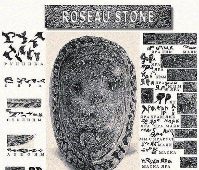 De szerencsére még mindig voltak fényképek róla. És elemezve őket C. Paytnaud amerikai történész részvételével, aki nőként látszólag intuitív módon rájött, hogy a kő felirat nagyon hasonlít a kőre Az ősi oroszok szláv ábécé. A tudós meghívott egy oroszot V. Pakhomov kollégája, aki nemcsak megerősítette az ütést Amerikai tudós, de lefordított néhány szót és – egy titokzatos tárgyra rajzolt kifejezések, és – Nevezetesen: Izyar Rus vagyunk, Yar templom, világítótorony, arc …
