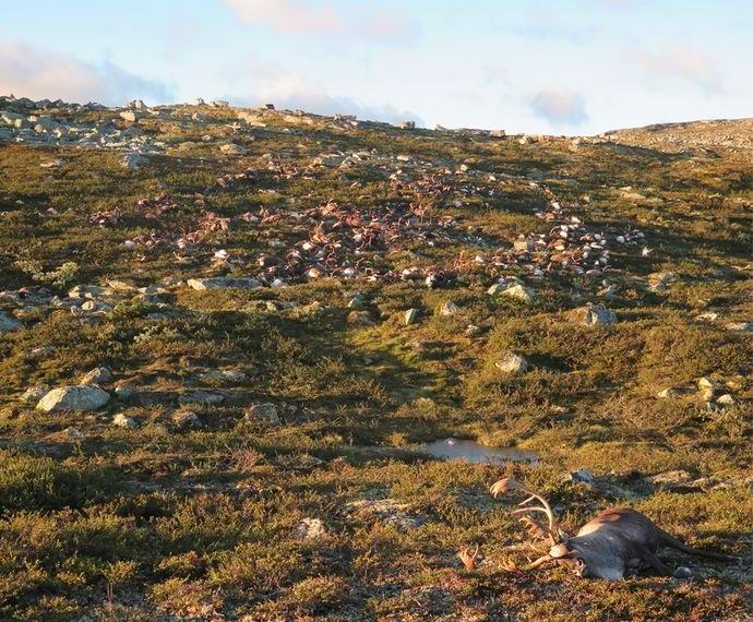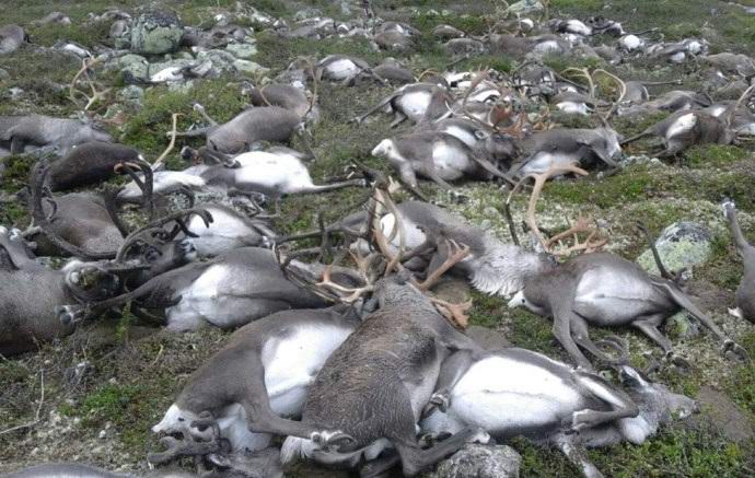Hardangervidda Nemzeti Park Nyugat-Norvégiában egy nagyon titokzatos esemény, amelyet nem lehet megmagyarázni tudósok. Huszonszáznyolc szarvast találtak halottnak ötven méter sugara. Újabb öt artiodaktil alakult ki kritikusan megsérültek, ezért eutanizálni kellett őket. Amint arról számoltak be képviselői, a hiba valószínűleg erőteljes ürítés volt villám, amely egyenesen nagy állatállományba zuhant.