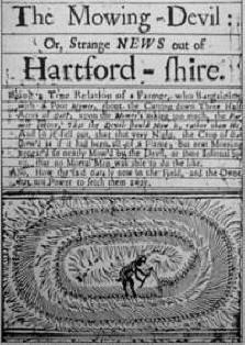 A legendát illusztrálja az 1678. augusztus 22-én kelt metszet. az ördög aratójáról. Az éjszakai háttér fényében izzó tárgyat ábrázol ég alatt a zab mezők Hertfordshire angol megyében. Másnap reggel néhány gazda talált egy szépen le kaszált mezőt. Növény-szerű telek.