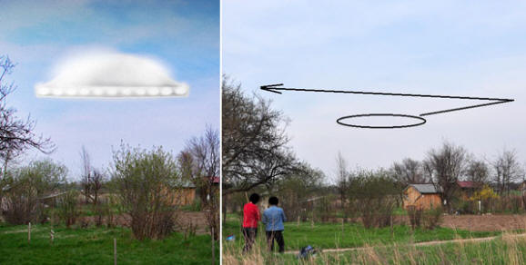 Gömb repülés közben (délről északkeletre) pulzáló, növekvő és csökkenő méretű. Egy perccel később Eve anyja csatlakozott, és magával vitte távcsövét, amelyen keresztül jobban meg lehetett látni a titokzatos tárgyat. Az volt egy arany narancssárga kupolás eszköz, amely nem bocsátott ki könnyű vakító szemek.
