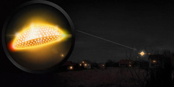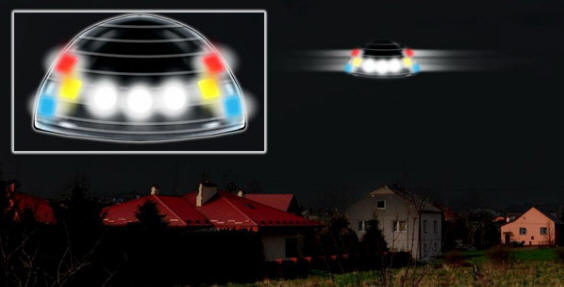 A felszínén sok kerek pulzáló volt egymáshoz közeli lámpák. Szemtanúk is emlékeztetett arra, hogy a tárgy jobb oldalán vörös volt világos, bal oldalon zöld.