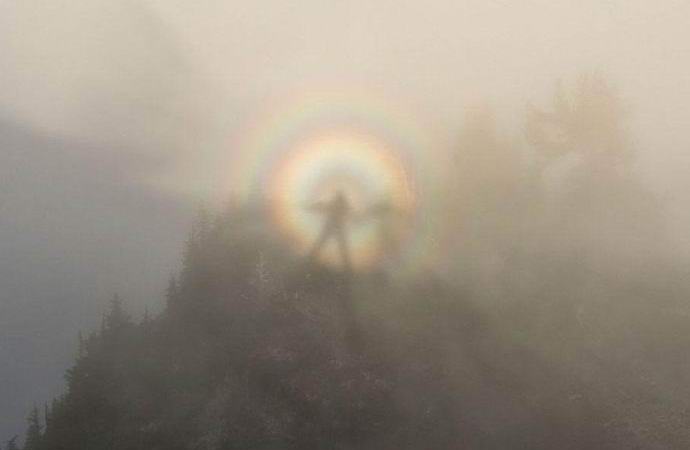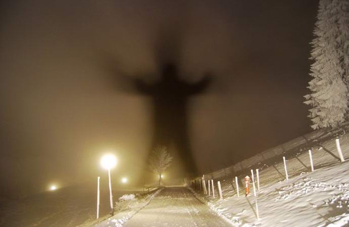Az emberi árnyék áthalad a ködön, szögletes és a perspektíva okozta bizarr körvonalak. Az ember és a felhők sok kilométer lehet, tehát az árnyék hatalmas A méretek és arányuk gyakran változik, például meghosszabbodik karok vagy lábak. A levegőn szétszórt vízcseppek, árnyék bejutása felteheti háromdimenziós megjelenését, inspirálva a megfigyelőket egy valósággal misztikus félelem.