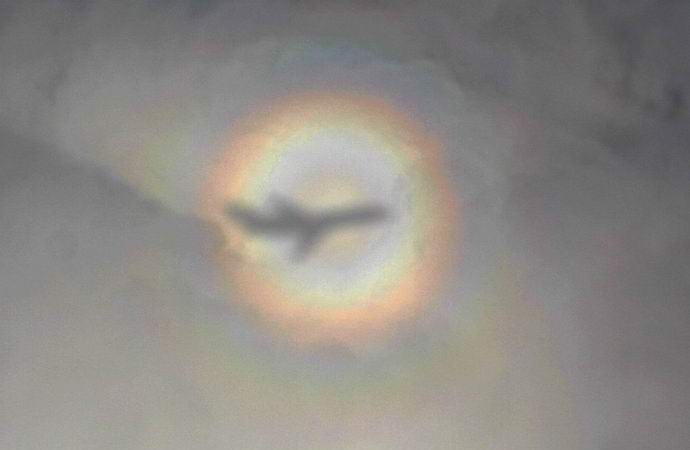 Figyelemre méltó, hogy nem csak az emberek vethetnek ilyen árnyékot, hanem állatok, fák, szerkezetek és még az egész hegyek is. Az a jelenséget néha a repülőgép ablakából lehet megfigyelni. Ha a repülőgép a nap és a felhők között helyezkedik el, majd árnyékát keretezi gloria, alább látható.