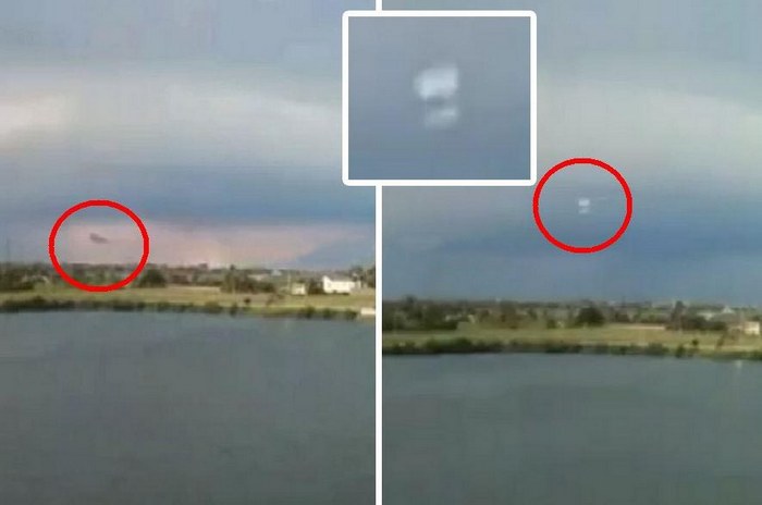 Egy ilyen pillanat a videofelvételen nyomon követhető, amely nyilvánosságra hozta az interneten az egyik amerikai él egy nagy tó partján. Felhívjuk figyelmét, hogy a képernyő bal oldalán több sötét UFO látható, ezek közül az egyik nagyon hasonló a a csomagtartó lebeg a felhő és a föld között. Ez teljesen lehetséges vegye figyelembe villámlás közben.