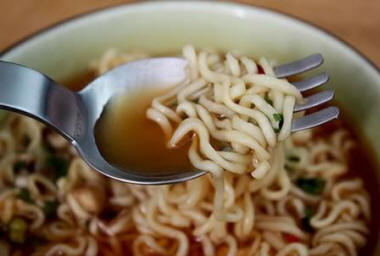 Ezt a hibrid kanalat és villát kifejezetten étkezésre találták ki Kínai tészta. Ezzel az eszközzel megteheti ugyanakkor vegye fel a tésztát, és öntse ki a húslevest.