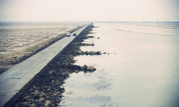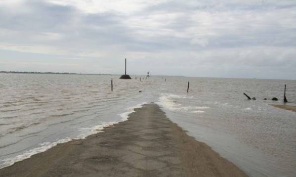 Még egy ilyen rövid láb is nagyon kockázatos. mozgáshoz. Az utazók néha nem takarítanak meg számos figyelmeztető jel, nincs árapály-menetrend és apály. Az a tény, hogy a víz ezen a helyen nagyon kezd megérkezni Gyorsan, ezért valaki, igen, minden bizonnyal a csapdába esik. Ilyen szerencsétlenül még speciális tornyokat építettek az autópálya mentén, amelyen az emberek várhatják el a dagályt. Igaz, mentse be az autót ebben az esetben nem lesz sikeres – és ez az út fő problémája számos turista (a helyiek már régen alkalmazkodtak a ilyen hangulatos módon).