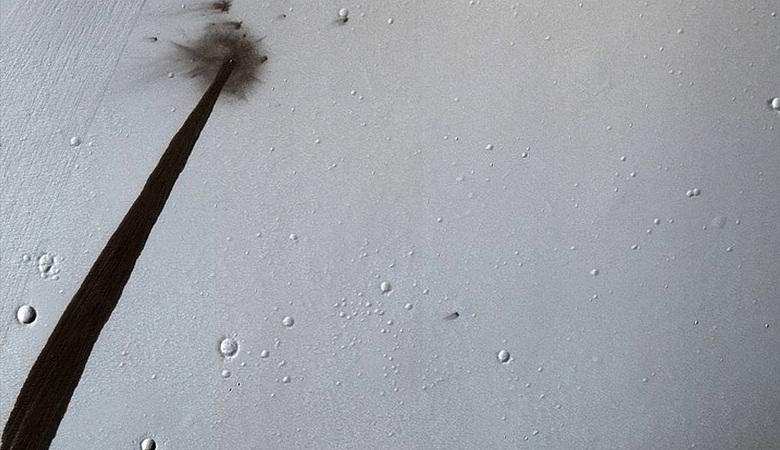 A NASA marsi felderítő műholdja két friss képet rögzít kráterek, ahonnan érthetetlen fekete anyag szivárog ki. A szerzők megállapítja, hogy egy meteorit sík területre zuhant felületre – és egy titokzatos folyadék, amely messzire oldalra szóródott. A második “mennyei vándor” a Mars hegy lejtőjén érkezett – és a folyadék bőségesen leöntött. “Olyan, mint egy csatornatörés” kutatók írnak. Véleményük szerint szennyeződés, olaj vagy olaj lehet néhány más szerves anyag. Talán a Vörös bolygó alkotja benne van egy ilyen anyagból.