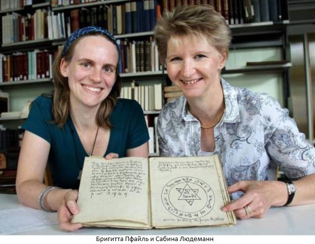 Brigitte Pfail (a könyvtári kéziratok osztályának helyettese) és Sabina Ludemann (a Hessian könyvosztály vezetője) találkozók) feltételezte, hogy a titkosított “táblagépek” németül és arab betűkkel írták – semmi más az ősi szerző kísérlete megtévesztővé tenni a titkot Alkimikusok és bűvészek.