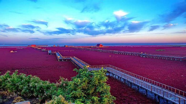 Annak ellenére, hogy a Panjin Red Beach-t strandnak nevezik, nem valószínű, hogy hazudsz rajta, de mindenki csodálja meg ezt a piercing szépséget itt egy sétát speciális fahidakat, vagy nézzen körül a hatalmasságon skarlátvörös “virágzás” a sok nézőplatform egyikéből.